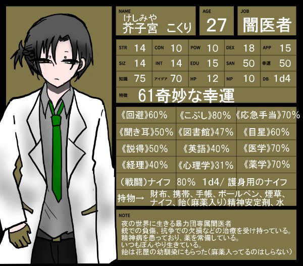 キャラ Kpc笹沼 依子 の詳細 クトゥルフ神話trpg用キャラクターシート Trpgオンラインセッションsns