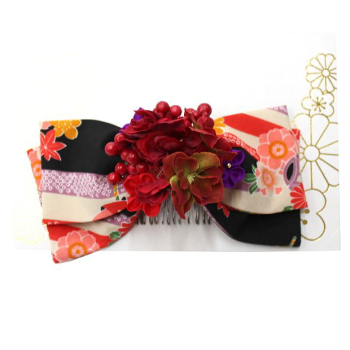 楽天市場 髪飾り 成人式 花 浴衣 リボン 生花風 つまみ細工 卒業式 着物 振袖 袴 結婚式 和装 フラワー ヘッドドレス 赤 黒 お買い物マラソン きもの京香